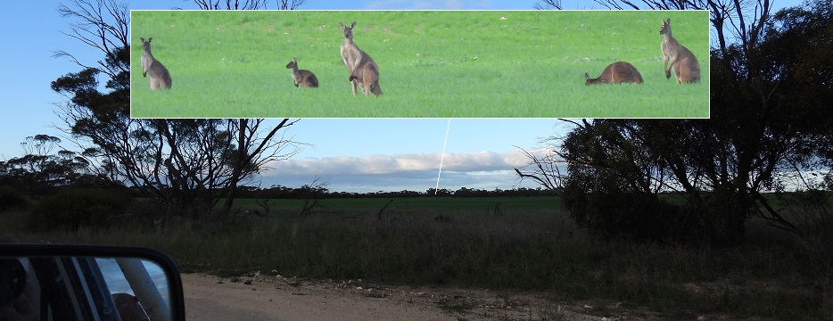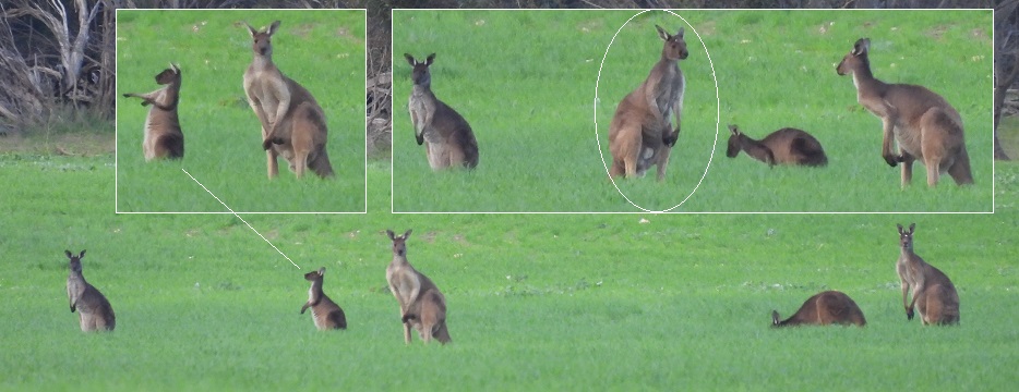 so what’s the possibility little skippy is pointing toward the approaching roo, the bigger one in the inset as circled came over