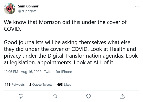 Had NewsRadio on in the car. It sounds like Christian Porter was advising Scott Morrison being a secret minister for this and that.