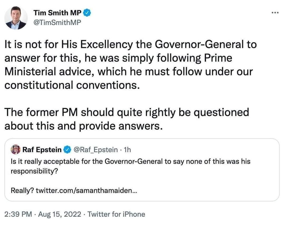 What ScoMo did was a clear contravention of the ideals of the Westminster style of parliamentary democracy, where there exists a ministry that are not only able to exercise executive authority, but are also accountable to Parliament for these decisions.