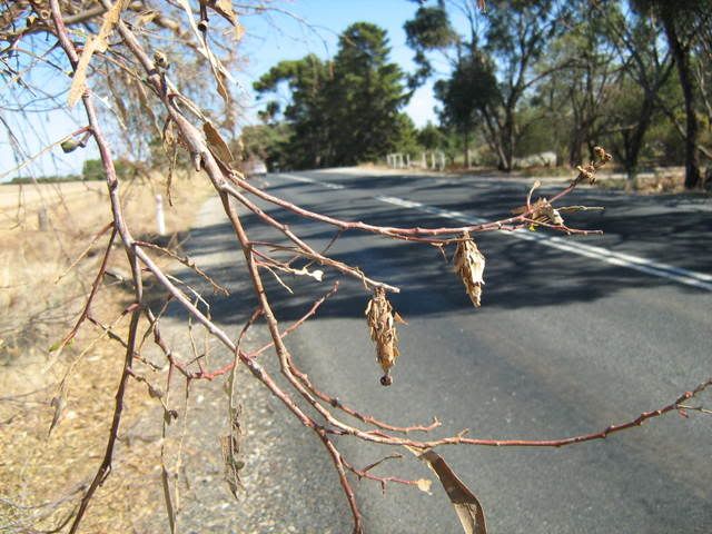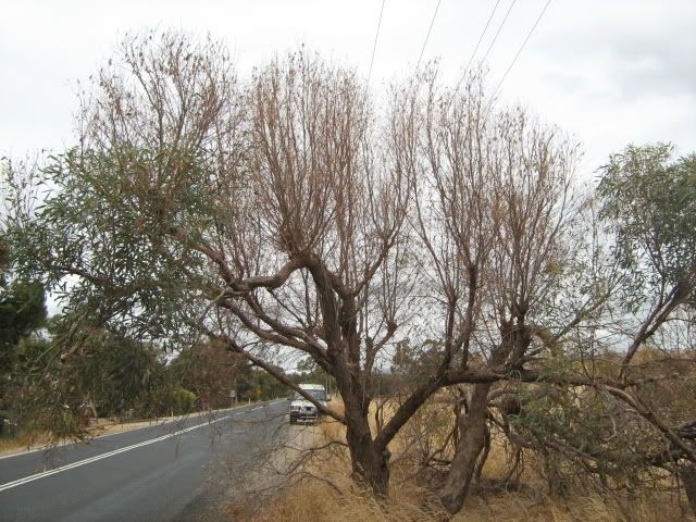 this eucalyptus odorata (peppermint gum) up the road opposite a neighbours place is being destroyed by these case moths. i have planted 6 of these indigenous trees so i have an interest in the fate of this gum.