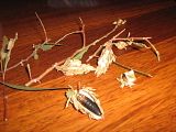 there are thousands of the case moths on the bare part of the tree (three quarters of it). most of them will now die because they move with their cases and the only remaining limb with leaves is too far away. some of the young ones with small cases might make the switch. apparently the local wasp is capable of attacking them.