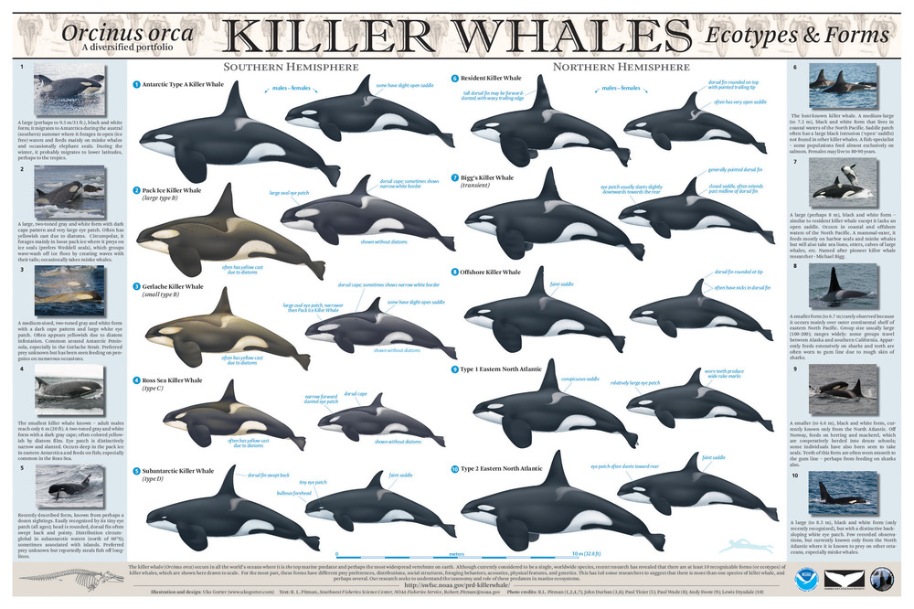 Thanks for that. I had heard that there is quite a lot of controversy about how many species/subspecies Orcinus orca there are. But I had not seen a list or poster before.