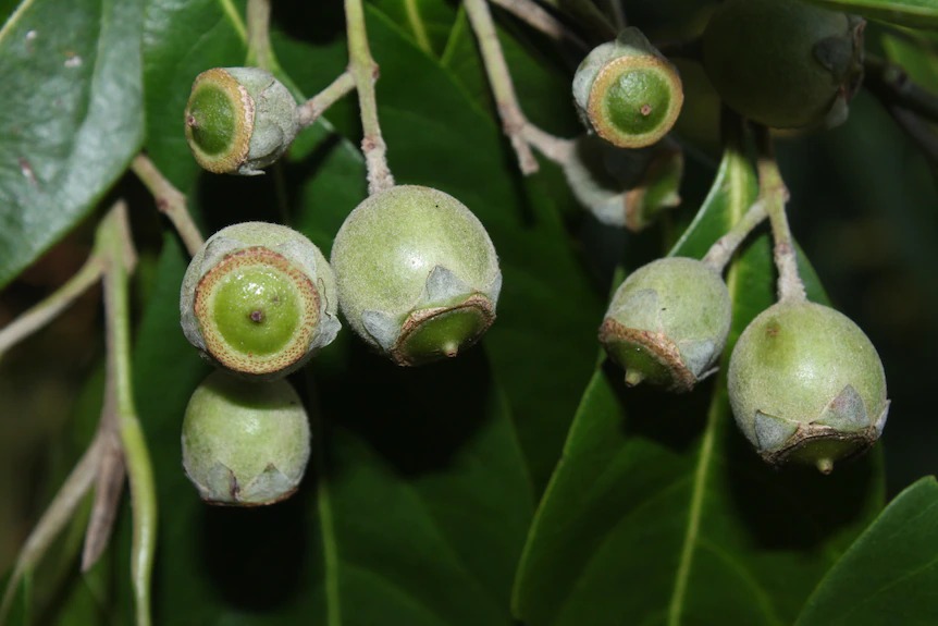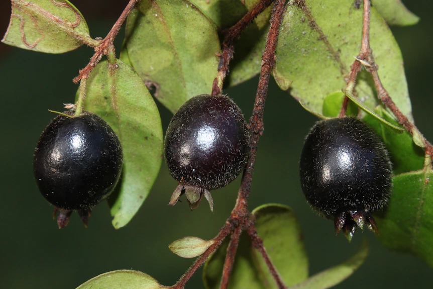 Another tree at risk of extinction is the thready bark myrtle (Gossia inophloia), which has edible fruit.
