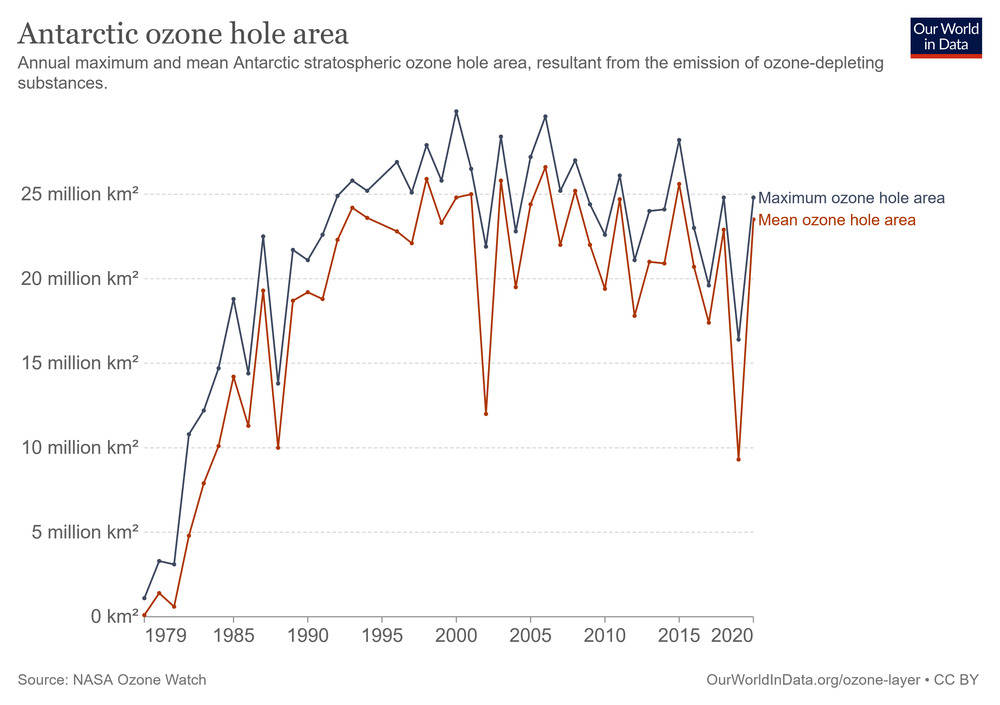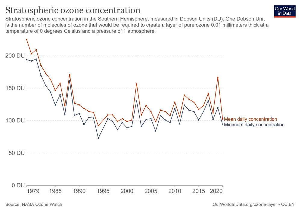 The ozone layer has managed to make some recovery since the 1980s as a result of a landmark multilateral agreement, the Montreal Protocol, phasing out the use of some chemicals. The stratosphere, which contains the ozone layer, is around 12 to 50 km above the Earth’s surface. It doesn’t usually vary much in temperature, except in events like volcanic eruptions or extreme prolonged bushfire events.