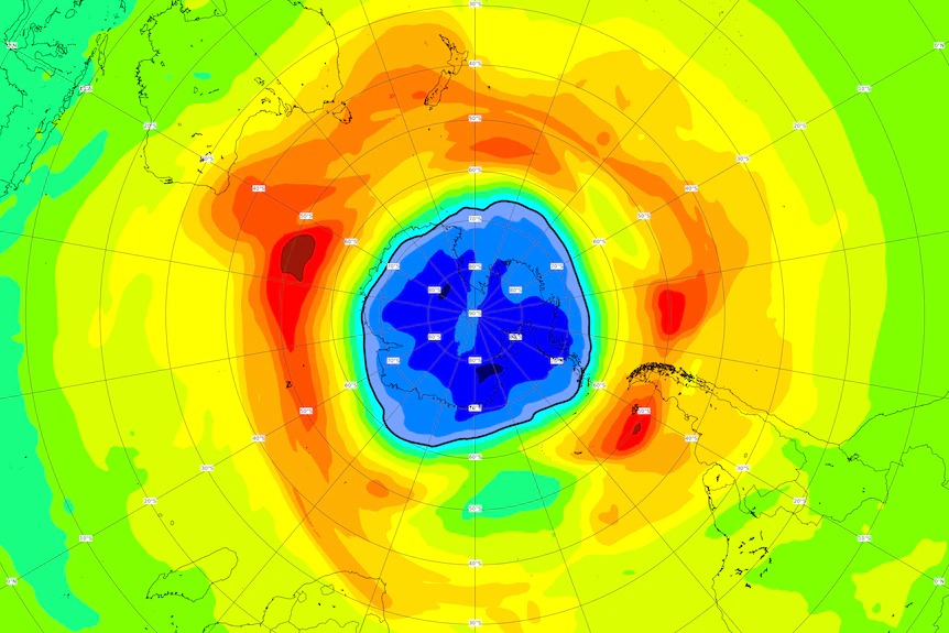 A map of the ozone hole over the South Pole last year shows the Southern Hemisphere ozone hole already surpasses the size of Antarctica.