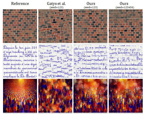 What seems to break the algorithm here is that the pattern is too big to handle. The software isn’t designed to handle coherence over such large distances, as with Leonardo Dicaprio’s face. And it shouldn’t be designed for such large distances, because then it is no longer a “texture” but instead a “pattern”.