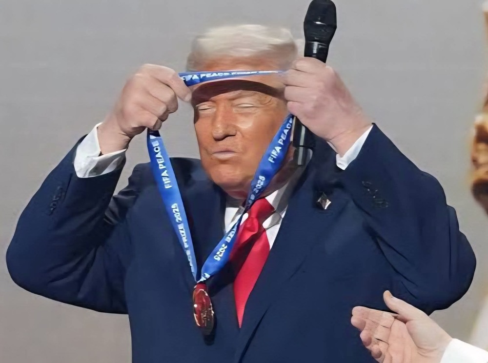 kii said:Here’s the dingbat putting the FIFA Peace Prize on. He looks so happy.