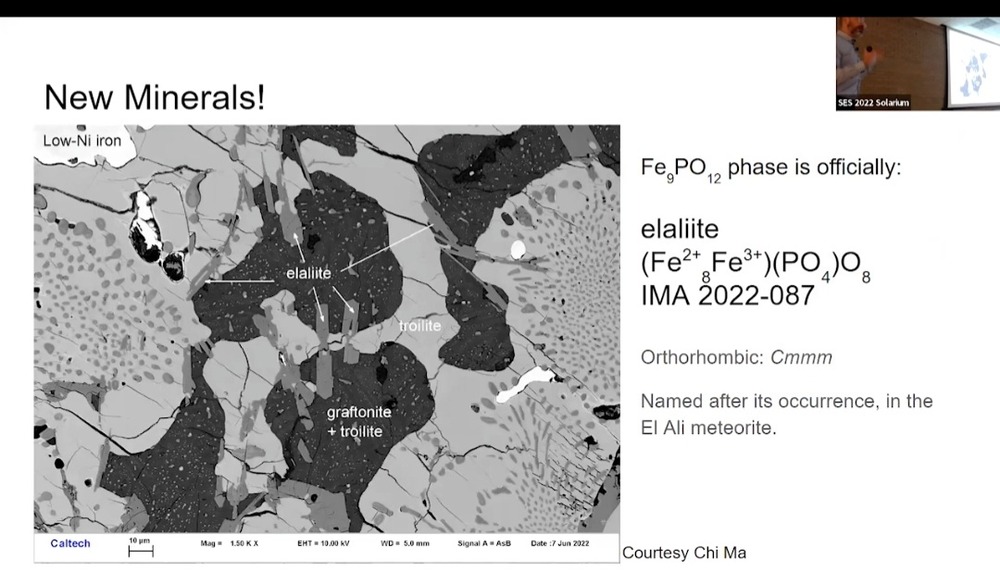 The two brand new minerals were found inside a single 2.5 ounce (70 gram) slice taken from the 16.5 ton (15 metric tons) El Ali meteorite, which crashed to Earth in 2020. Scientists named the minerals elaliite after the meteor and elkinstantonite after Lindy Elkins-Tanton(opens in new tab), the managing director of the Arizona State University Interplanetary Initiative and principal investigator of NASA’s upcoming Psyche mission, which will send a probe to investigate the mineral-rich Psyche asteroid for evidence of how our solar system’s planets formed.