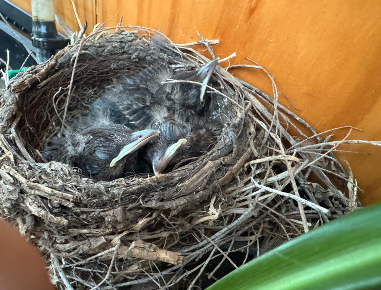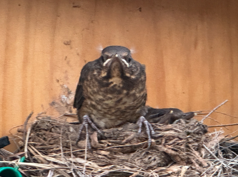 It didn’t take long before the parents got busy and laid new eggs, and two weeks later my friend said I better come over as the babies are getting ready to fly the nest.