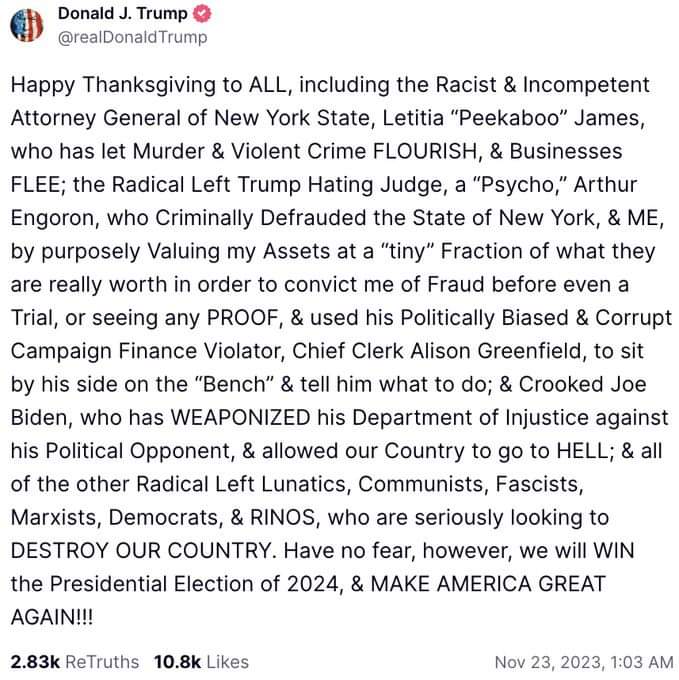 One day before, Judge Arthur Engoron told Trump’s attorneys that he would only be allowed to speak if he limited his comments to “relevant, material facts that are in evidence, and application of the relevant law to those facts.” His legal team did not agree to the conditions.