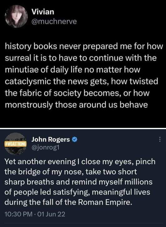I haven’t kept up with both of them. There’s just so much happening in this country and so many commentators, with excellent stuff. Plus all my personal shit. It’s exhausting.