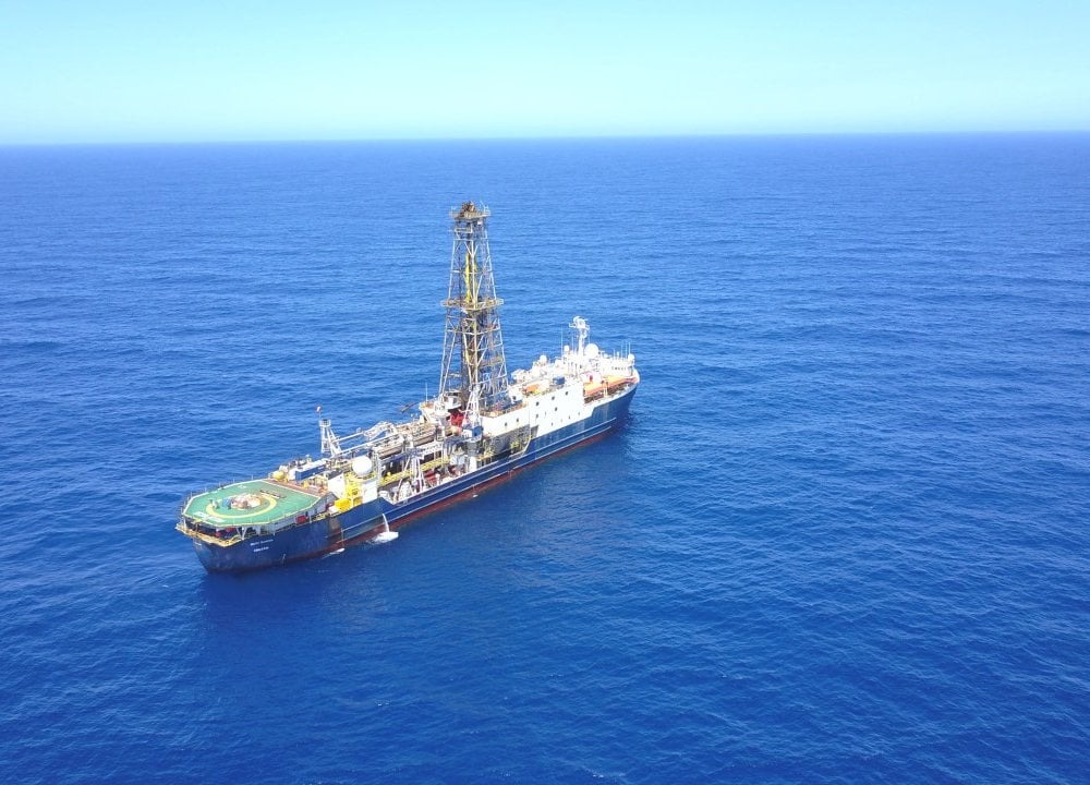The research vessel JOIDES Resolution collecting samples in the Indian Ocean off the western coast of Australia in 2017.