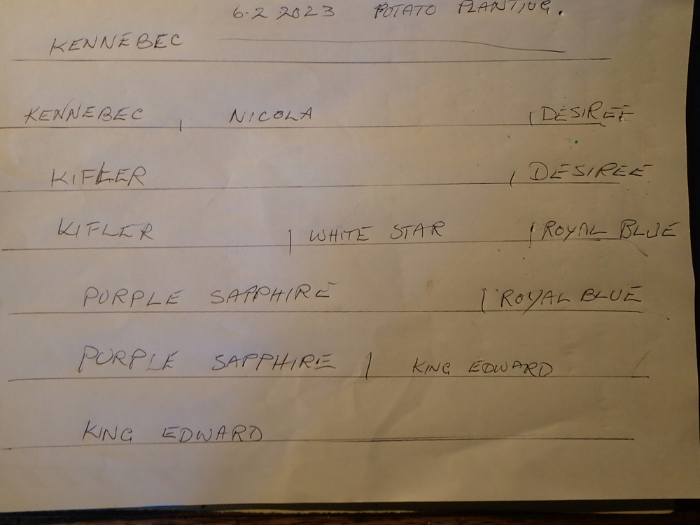 An attempt to keep gardening stuff together. Here’s my potato planting in one patch. I still have more varieties to plant if I wish to prepare another spot.