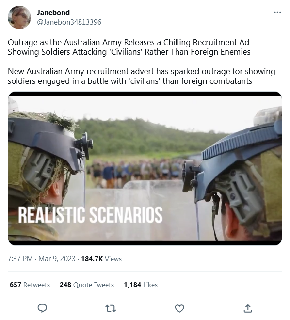 Anyone remember when, in the aftermath of the Hilton Hotel bomb back in 1978, the L/NP govt got Australian Army troops to ‘patrol’ the railway line to Bowral and the streets of Bowral itself?I doubt that there was anyone in the ADF at the time who didn’t consider this to be anything other than face-saving bullshit by the government, quite unnecessary, and none of the soldiers drafted into it really wanted to be there.