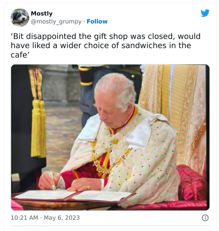 Here’s a thought:For most Kings/Queens, their own coronation is most likely the last one they’ll attend.