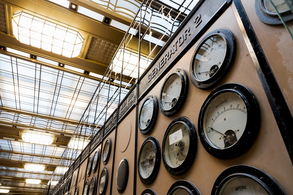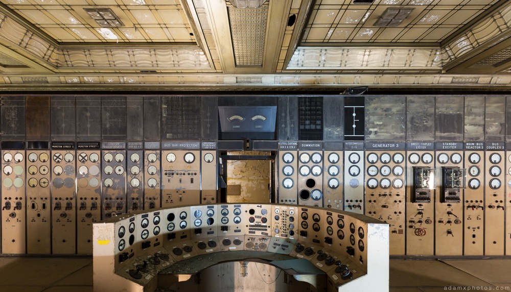 Some atmospheric portraits of the control rooms of the Battersea Power Station, during use, and before and after restoration.