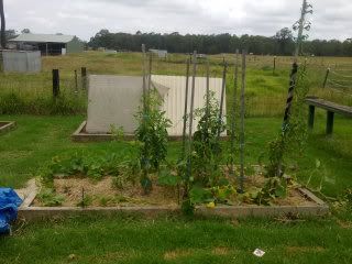 Tomato bed right hand side is a Cherry tomato. Got a diggers tomato (forget its name). A frame behind has some Culls (unwanted cockerels) for usage in the House.