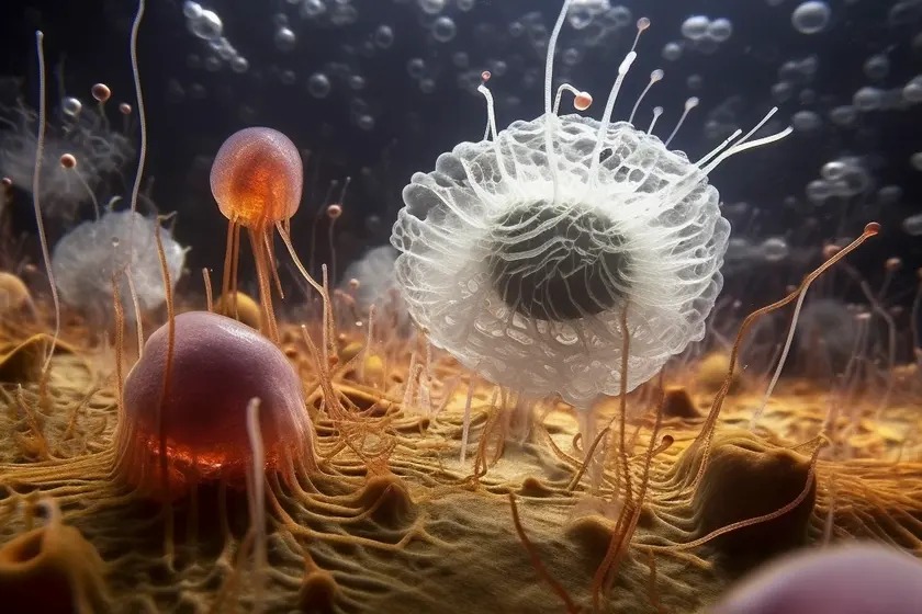 An AI-generated image constructed by the researchers illustrates what the lifeforms in the “Protosterol Biota” may have looked like