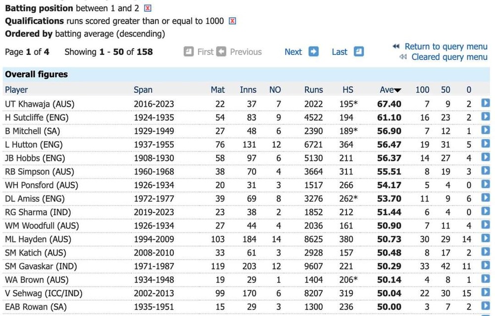 My man Martin B points out that Khawaja has by far the highest batting average as an opener (1000 run qualification).