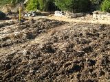 So I’m going to plant the garden by the ponds which was used for last winters spud crop. This soil is easily forked – it had three trailer loads of – cowdung, sand and mushroom compost added a year ago. I will use this three-trailer-loads systems on the soil I can’t fork over and plant spuds. Hopefully this will condition the soil for next year.
