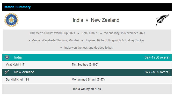 I suppose we should point out that India dismissed Australia for 199 in the round robin phase.