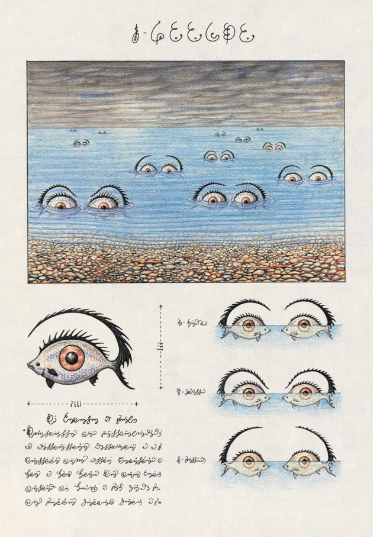“The Codex Seraphinianus, originally published in 1981, is an illustrated encyclopedia of an imaginary world, created by Italian artist, architect and industrial designer Luigi Serafini between 1976 and 1978. It is approximately 360 pages (depending on edition) and written in an imaginary language…