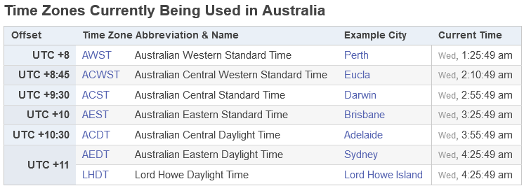 9 time zones for Australia