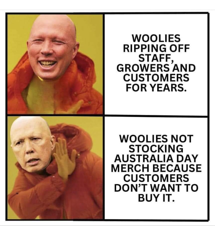 Apparently Mr Dutton thinks Woolies are making a wrong move. And yet…he is of the party of free marketers. And I’m pretty certain that while there might be a bit of reputation care involved here, the biggest factor would be if they can sell the stuff or get lumbered with having to put it back into storage for next year. You sell what the market will buy.