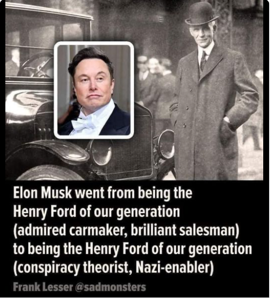 Twitter, aka X, was a mistake for him, but he got in too far to extract himself. However, it is an inconsequential business where all sorts of people, especially nutters can voice their opinions, but all in all, they really don’t matter. So one of his many businesses is going down the drain, but it seems to be only his enemies and people who cannot see his real worth that are getting all upset about it. Don’t get your knicker in a knot, because it does not concern you and Elon will have learnt something and lost some money he can well afford to lose. The world nor Elon is going to collapse because of it and those who think social media is the best, will soon move onto the next shiny thing.