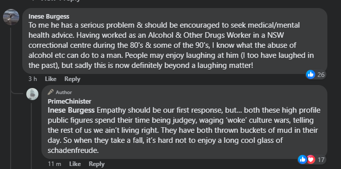 i got called out for saying this was not funny. ‘sick of inbred and two headed Tasmanian jokes’.