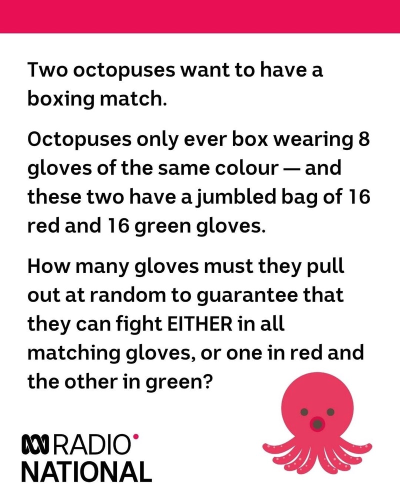 But of course, octopuses being intelligent creatures, they would just look in the bag and just select the 16 gloves they wanted.