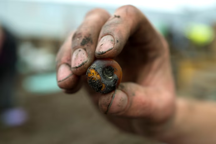 An amber bead from the Must Farm site. (Cambridge Archaeological Unit)