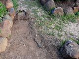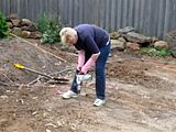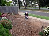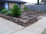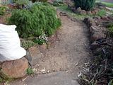 The man had an idea for the big rock that took 4 and a half men to move..seeing as both surfaces on it are flat.. bury it level with the footpath and make it the entry for the small path that needs to go to the meter boxes. Easier said than done! But he and I did it. That took all morning. We were jumping up and down on it to celebrate and to settle it.