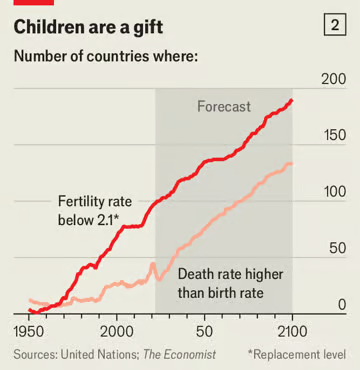 Birth rates in America, Europe and East Asia have fallen far enough that not even appealing to women whose fertility reacts most strongly to incentives is going to stop populations from shrinking. But by 2050 more than three-quarters of the world’s women will be reproducing below replacement rate, according to forecasts published by the Lancet, a medical journal. Even if governments are unable to turbocharge birth rates overnight, they will not stand idle. Pro-natal policies are only going to gather momentum.
