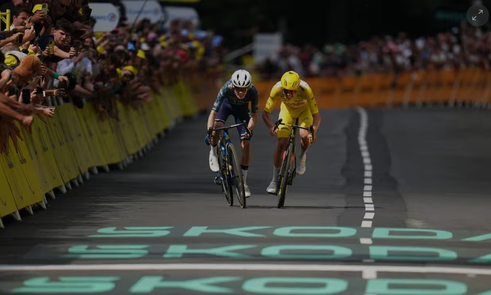 Romain Bardet wins stage one of the Toour de France and takes yellow!The sprinters couldn’t make an impact and the DSM pair cross 150m ahead of the bunch. What a performance from Van Den Broek, he did the big turns in those last five kilometres.