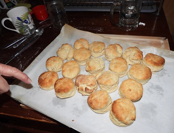 Not quite as windy here as the other day; I didn’t need to get up overnight to stop the shed door slamming, but I’ve just done it now.Scone with jam and cream for brekkie. My homemade chia jam is better than the bought low-sugar spread, but it’s still tolerable.