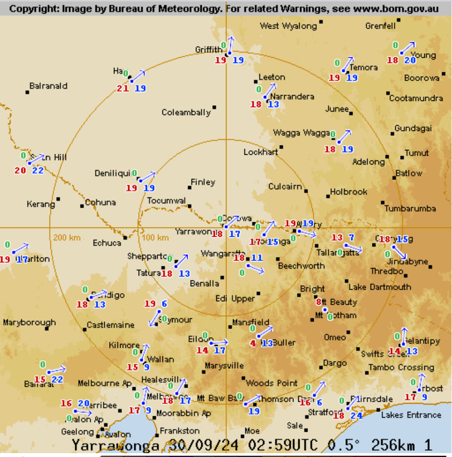 It’s 15.5° C, 95% RH and overcast with a light air. The overcast is a risen fog, so it will likely burn off in a couple of hours. BoM forecasts 28° C and partly cloudy, so maybe the overcast is not a risen fog. The satellite images show opaque, stationary cloud that is reducing in size. So I am now officially confused.