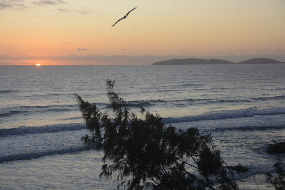 I should have been able to post a comet photo, but that didn’t work out, so some sunrise photos (one with an osprey and Double Island Point) and a photo of water ripples caused by sea outflow around a rock will have to suffice.