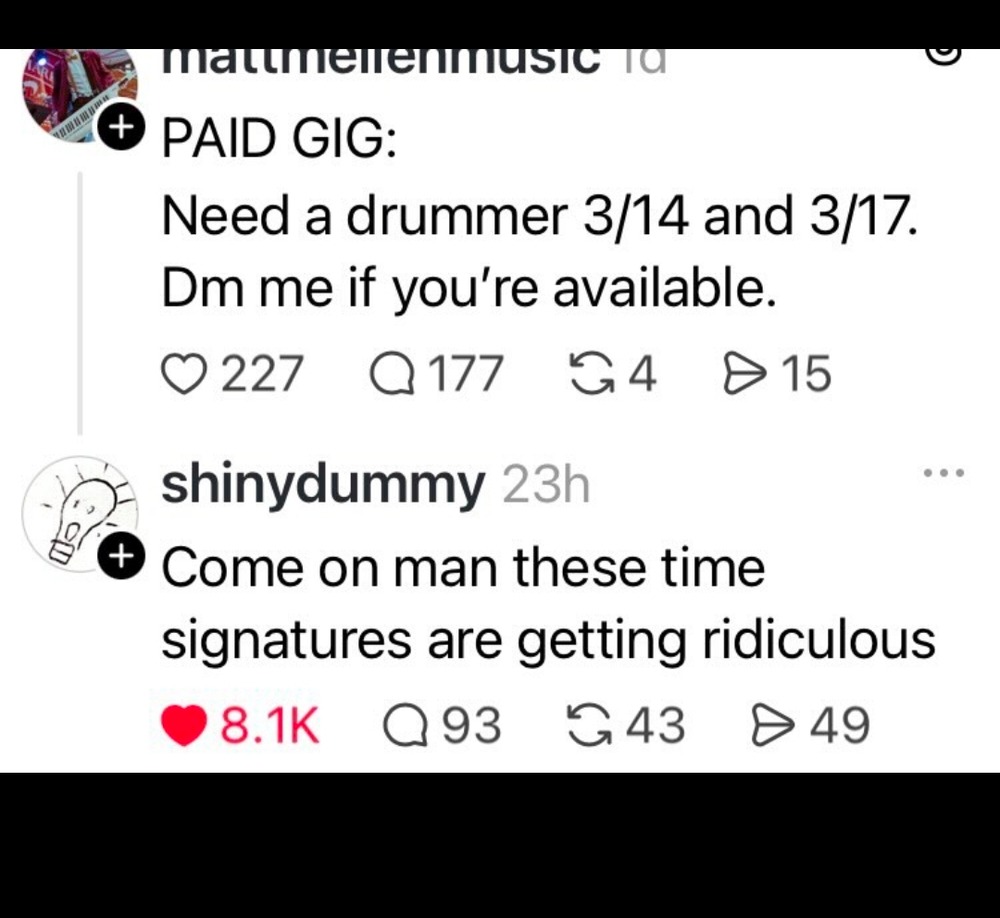 The E-flat, not easily deflated, comes back to the bar the next night in a 3-piece suit with nicely shined shoes. The bartender (who used to have a nice corporate job until his company downsized) says: “You’re looking sharp tonight, come on in! This could be a major development.”