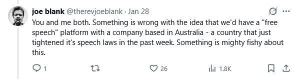 as some of yous have suggested it would be wise for governments that run their own currencies and websites and identity services to also provide a sovereign online town square, we are on board with this idea