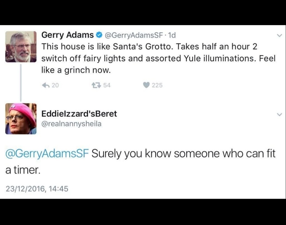 - “Why won’t Angela Rayner get any Christmas presents this year? Santa can’t decide which address to deliver to.”