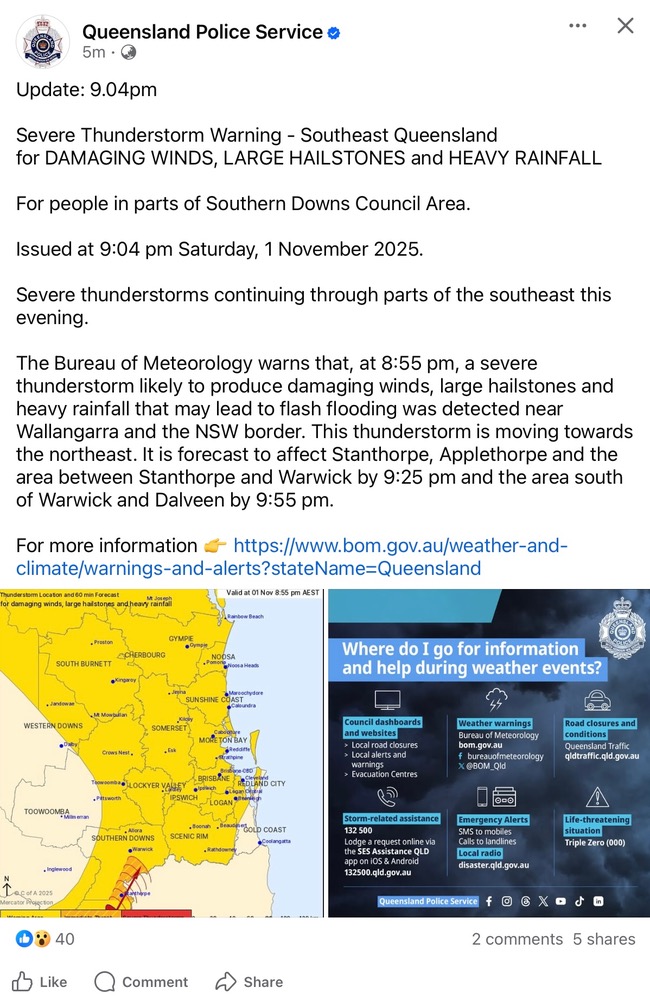 Top of 26 with severe storms expected. Energex is preparing for a mother of a storm. Events are being cancelled, even indoor ones because they’re expecting people ti stay at home.
