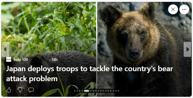 That’s why they’ve encased almost the entirety of their coastline in concrete tetrahedrons, why there’s practically not a river in Japan that hasn’t been confined into a cement-lined channel, and why, anytime that a wild animal does just about anything at all that you would expect a wild animal might do, their response is to either beat it to death, or hunt it down with the full might of the nation, and render it harmless (which is often a euphemism for ‘dead’).