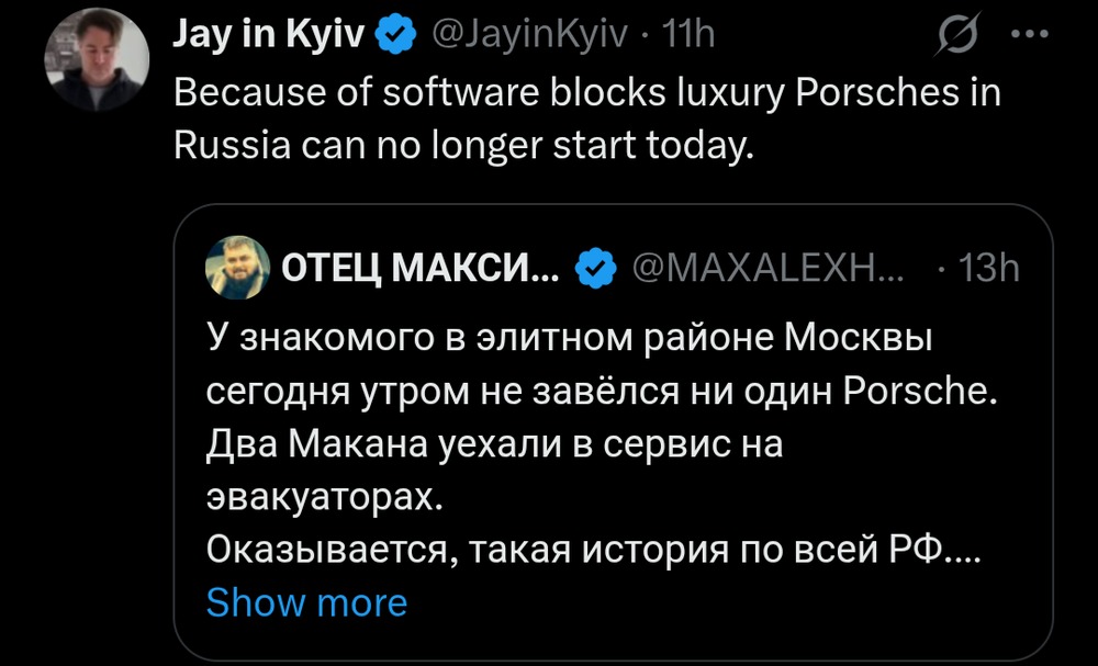 Germans blocking their cars from starting in Russia is quite amusing, enshittification aspects aside.