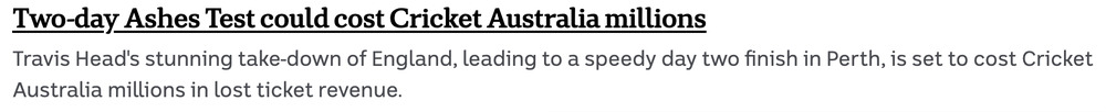 They’re gunna have to do something about these 5 day tests finishing in 3 days. Just think of all that ticket revenue they’re missing out on.