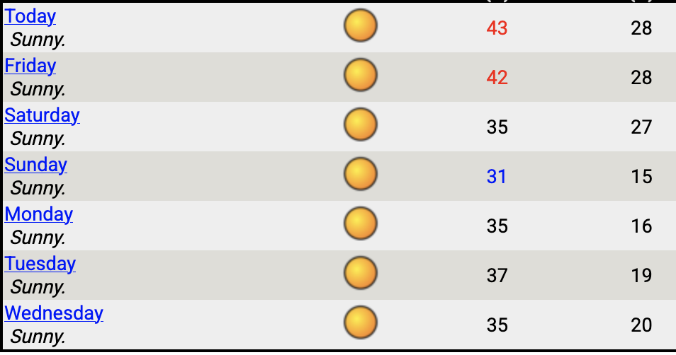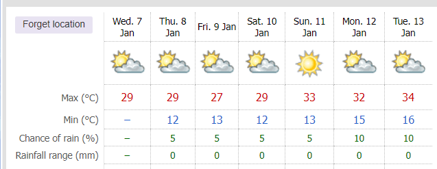 Good morning Holidayers. Presently 7 degrees at the back door and overcast. We are forecast a sunny 23 degrees.