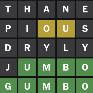 That’s not even a fucking word. I tried JUMBO and DUMBO and then bombed out.
