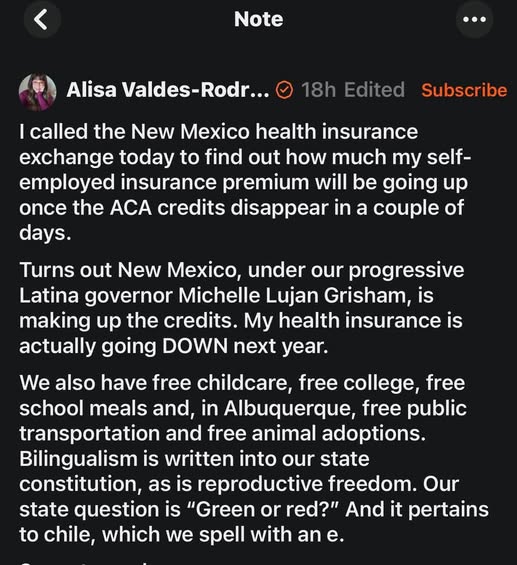 Meanwhile in NM…I hope the healthcare insurance bit is right. I know that the free childcare, school meals and free buses is real. Free animal adoptions worries me a bit, NM is a known place for illegal dog fights.