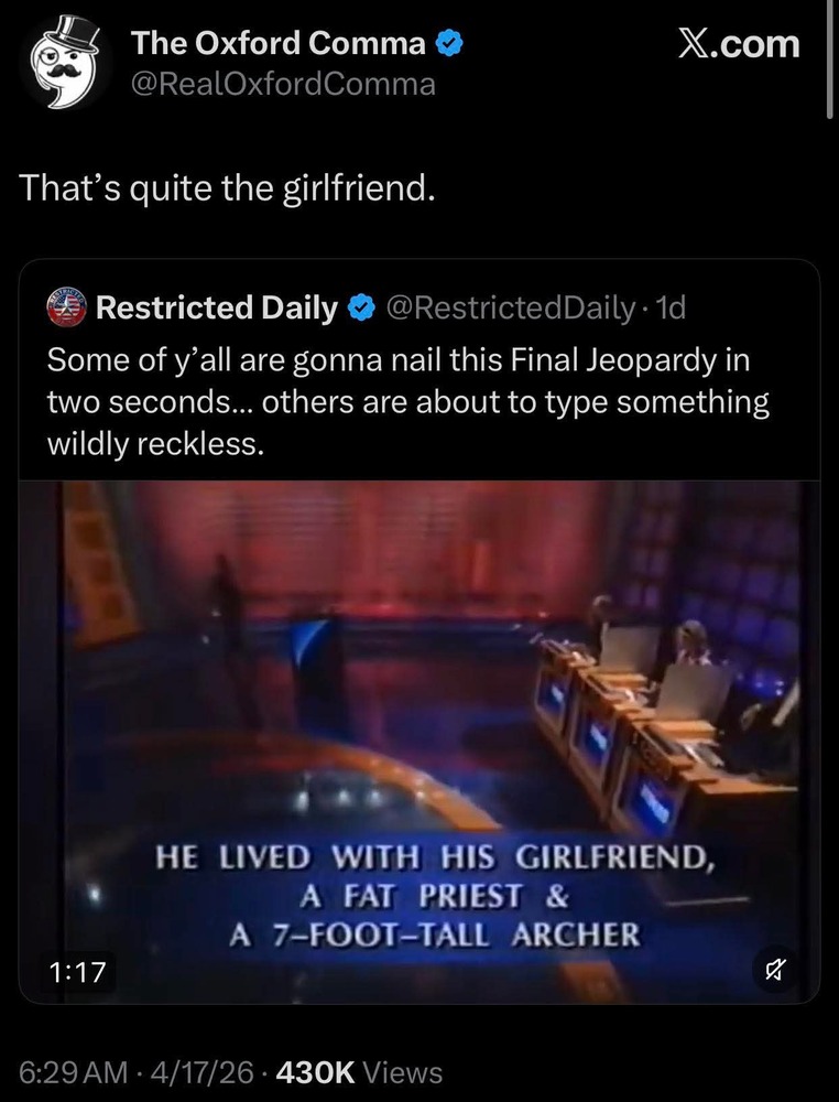 Oh, I thought that might have been the joke. Unfortunately (and, as usual), you’ll have to explain it to me.
