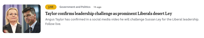 https://www.abc.net.au/news/2026-02-01/liberals-dismiss-prospect-of-imminent-leadership-challenge/106292412